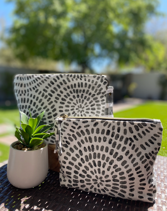 Black and White Watercolor Dot Makeup Pouch for Travel and Organizing "Zara"