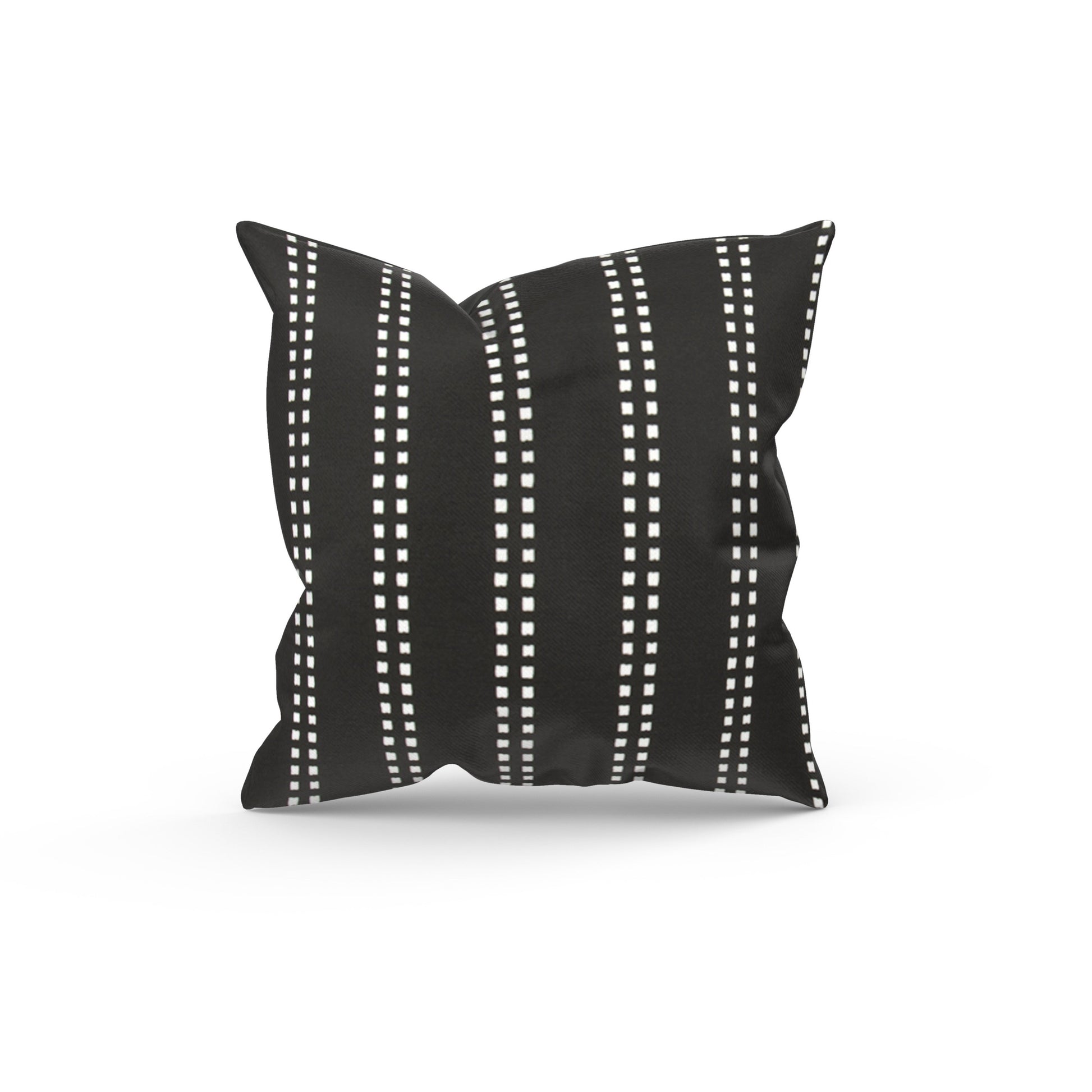 Our Black Abstract Double Stripe Outdoor Pillow Cover is perfect for your patio, deck or porch! The zipper enclosure provides a smooth fit over your insert (not included). This cover is made with UV and weather resistant outdoor polyester and thread and it has white double abstract stripes created with tiny squares over a black background. We welcome custom sizes and cushion cover requests!Please review all listing details below BEFORE placing your order.
