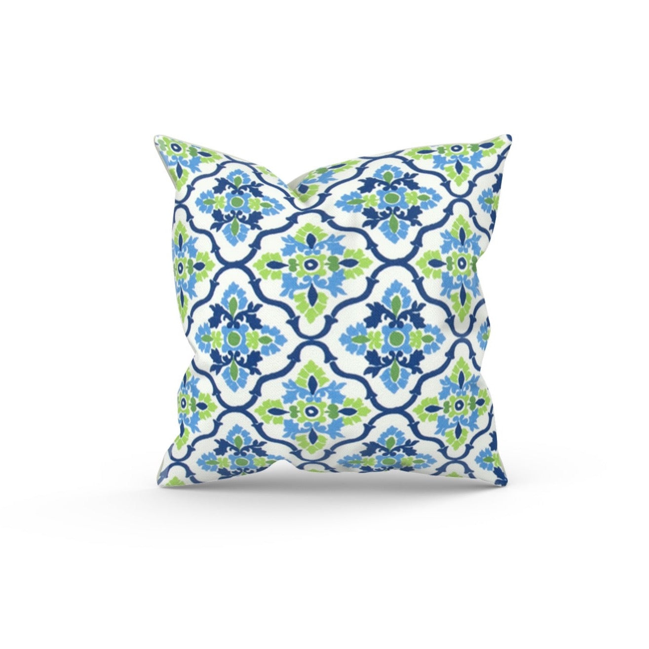 Blue Green Gate Inspired Outdoor Pillow Cover