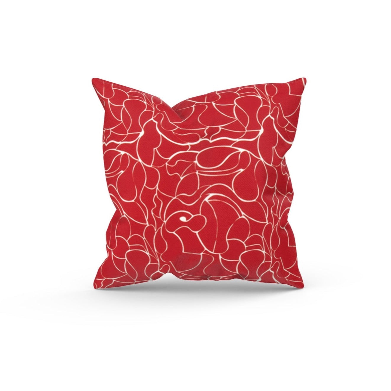 Our Bright Red Abstract Floral Outdoor Pillow Cover is read to shine on your couch in your Outdoor Living Areas! Whether you use it with your patio seating or deck decor, this pillow is always going to brighten up your surroundings. Covers are also thoughtful housewarming gifts for your new neighbor to use on their front porch! And don't forget about that a birthday gift for your BFF! The zipper enclosure provides a smooth fit over your insert (not included). This cover is made with 100% outdoor polyester with a white abstract floral pattern over a bright red background. We welcome custom sizes and cushion cover requests!