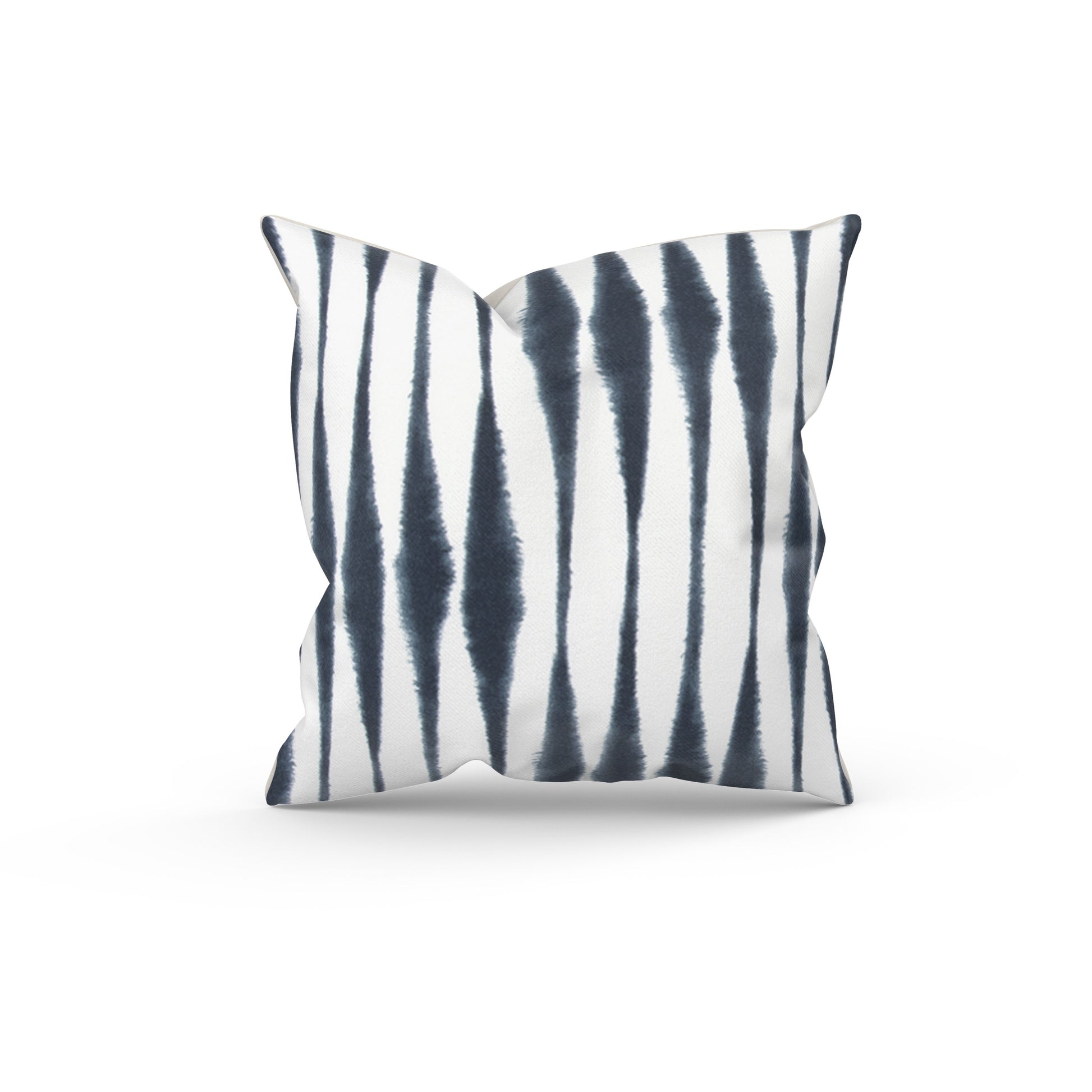 Our Navy Blue and White Abstract Stripe Outdoor Pillow Cover is going to be a hit in your outdoor living spaces! This cover has a versatile style for farmhouse, contemporary or boho styles. Whether you use it with your patio seating or deck decor, this pillow is always going to brighten up your surroundings. The zipper enclosure provides a smooth fit over your insert (not included). This cover is made with 100% outdoor polyester with variations of navy blue tie dye or watercolor inspired wavey stripes on a white background. We welcome custom sizes and cushion cover requests!