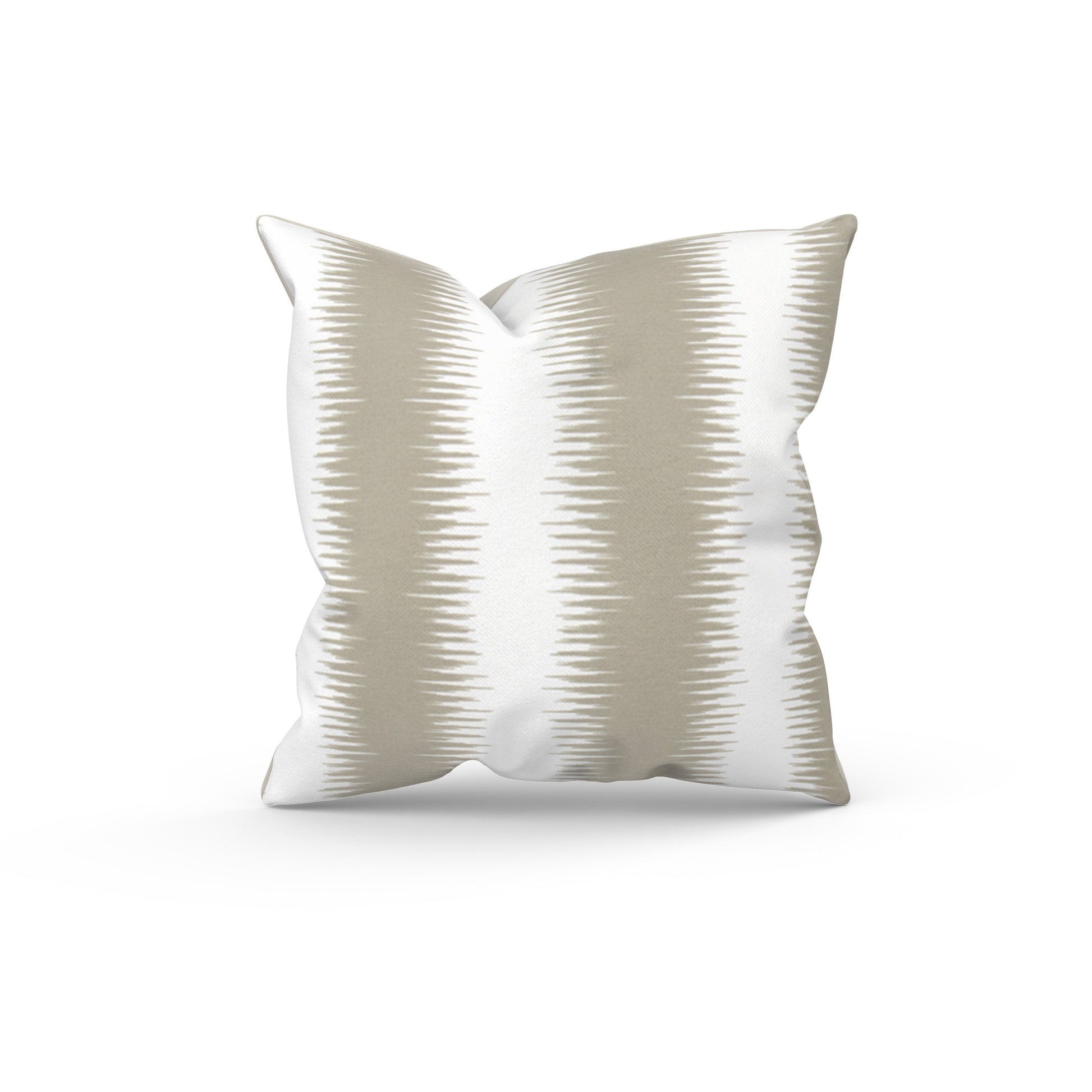 Our Tan Abstract Stripes Outdoor Pillow Cover is the perfect choice for any outdoor living space whether it's on your patio or deck seating! Made with fade resistant outdoor polyester, UV resistant thread, and a zipper enclosure which provides a smooth fit over your insert (not included). This pattern has an abstract stripe pattern over a tan background.