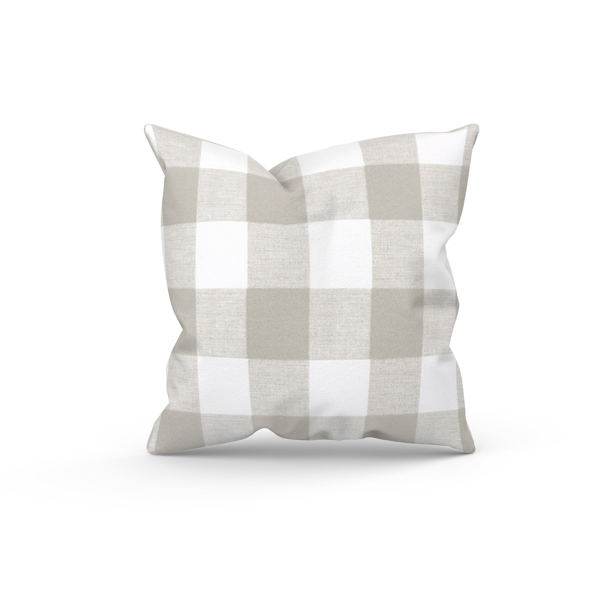 Our Tan Buffalo Check Outdoor Pillow Cover is the perfect choice for any outdoor living space whether it's on your patio or deck seating! Made with fade resistant outdoor polyester, UV resistant thread, and a zipper enclosure which provides a smooth fit over your insert (not included). This pattern has a tan buffalo check / plaid pattern on a white background.