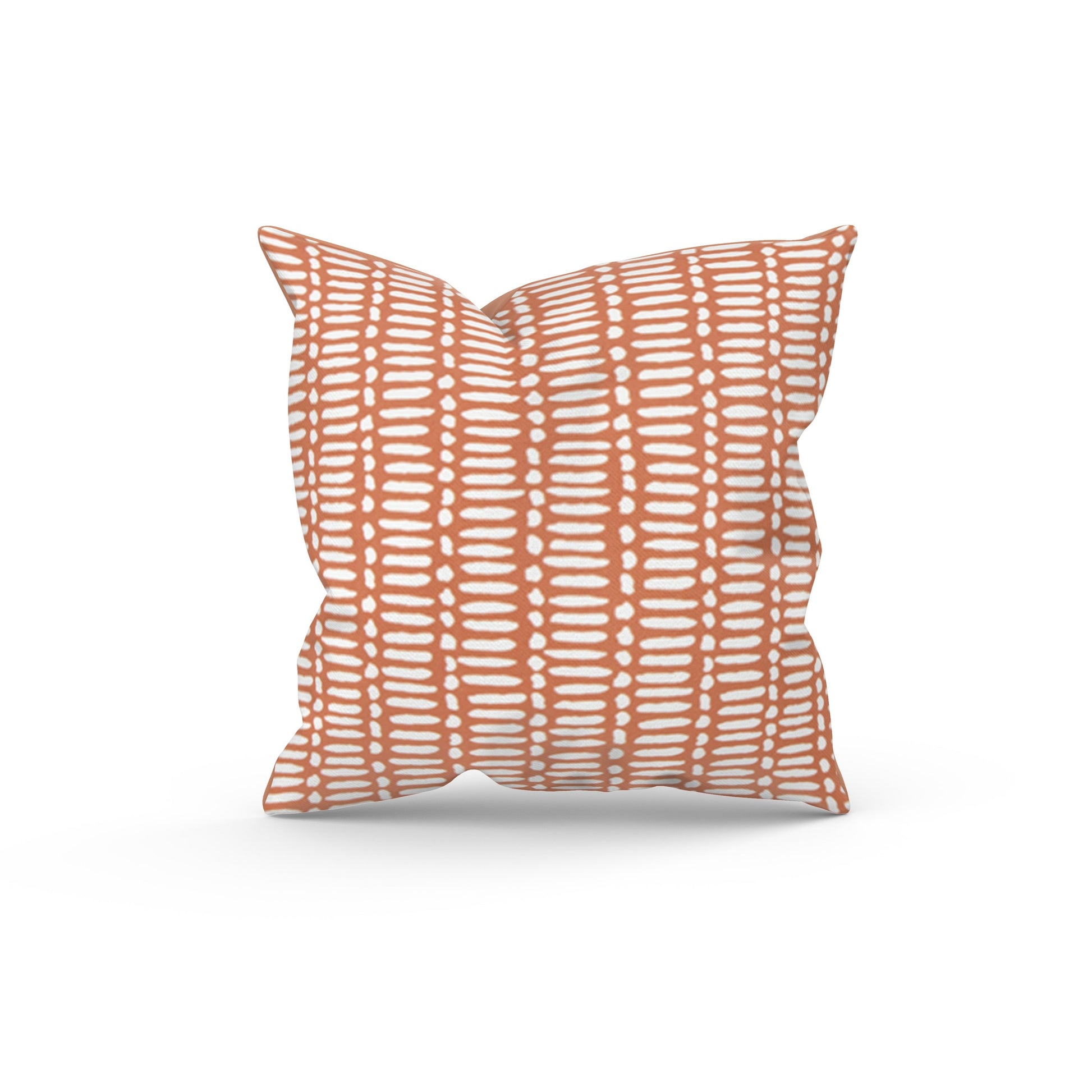 Transform your outdoor living spaces with a beautiful Terra-cotta Orange Dash Pillow Cover! UV and weather-resistant, this outdoor polyester cover will bring comfort to patios, porches, and decks. Enjoy outdoor decor that's both beautiful and created to last!