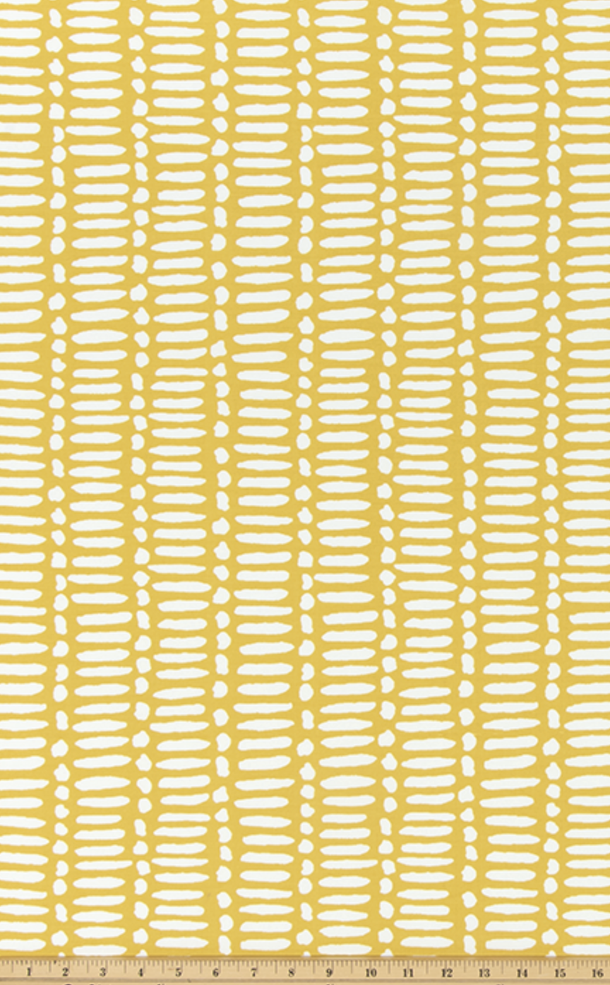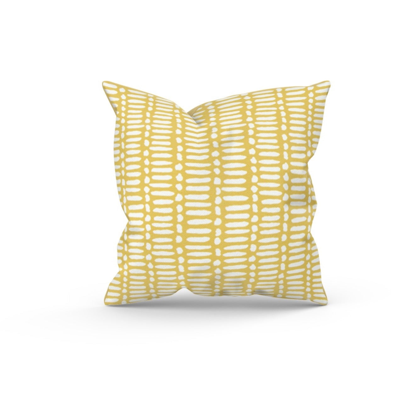 Our Yellow Abstract Stripe Outdoor Pillow Cover is read to shine on your couch in your Outdoor Living Areas! Whether you use it with your patio seating or deck decor, this pillow is always going to brighten up your surroundings. Covers are also thoughtful housewarming gifts for your new neighbor to use on their front porch! The zipper enclosure provides a smooth fit over your insert (not included). This cover is made with 100% outdoor polyester and it has a unique white abstract stripe al pattern over a yellow background. The yellow in this color variation has a faint brown undertone and darker edges (see closeup image).